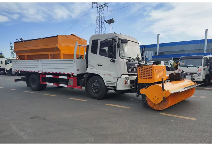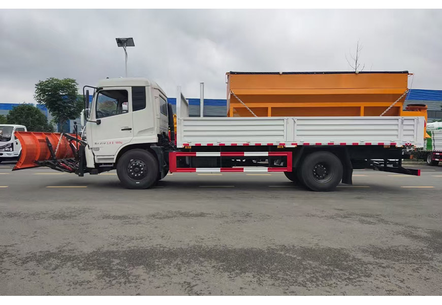 上裝配置 整體避障除雪鏟,夜間工作燈,車取力重型除雪鏟(左右雙液壓驅(qū)動(dòng))可搭配8立方或者10立方融雪撒布機(jī)(獨(dú)立柴油動(dòng)力,鏈條刮板輸送,采用V型料倉(cāng),頂部帶防雨罩,折疊式不銹鋼撒布盤)3-3.5米雪鏟、3-3.5米雪鏟及撒布機(jī)均采用集成按鍵駕駛室操作。