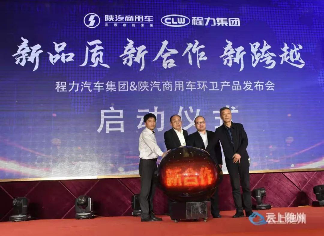 程力汽車(chē)集團(tuán)黨委副書(shū)記、集團(tuán)公司常務(wù)副總經(jīng)經(jīng)理、程力(湖北)底盤(pán)供銷(xiāo)公司董事長(zhǎng)程國(guó)強(qiáng),陜汽商用車(chē)銷(xiāo)售公司副總經(jīng)理魏宇龍,程力集團(tuán)副總經(jīng)理、底盤(pán)供銷(xiāo)公司總經(jīng)理劉峰,陜汽商用車(chē)銷(xiāo)售公司專(zhuān)用車(chē)部部長(zhǎng)穆瑋周共同啟動(dòng)水晶球,宣布程力集團(tuán)陜汽商用車(chē)環(huán)衛(wèi)系列產(chǎn)品正式發(fā)布。