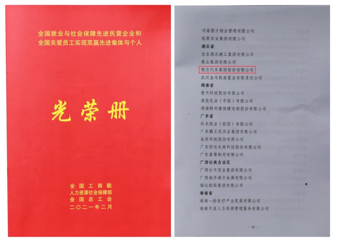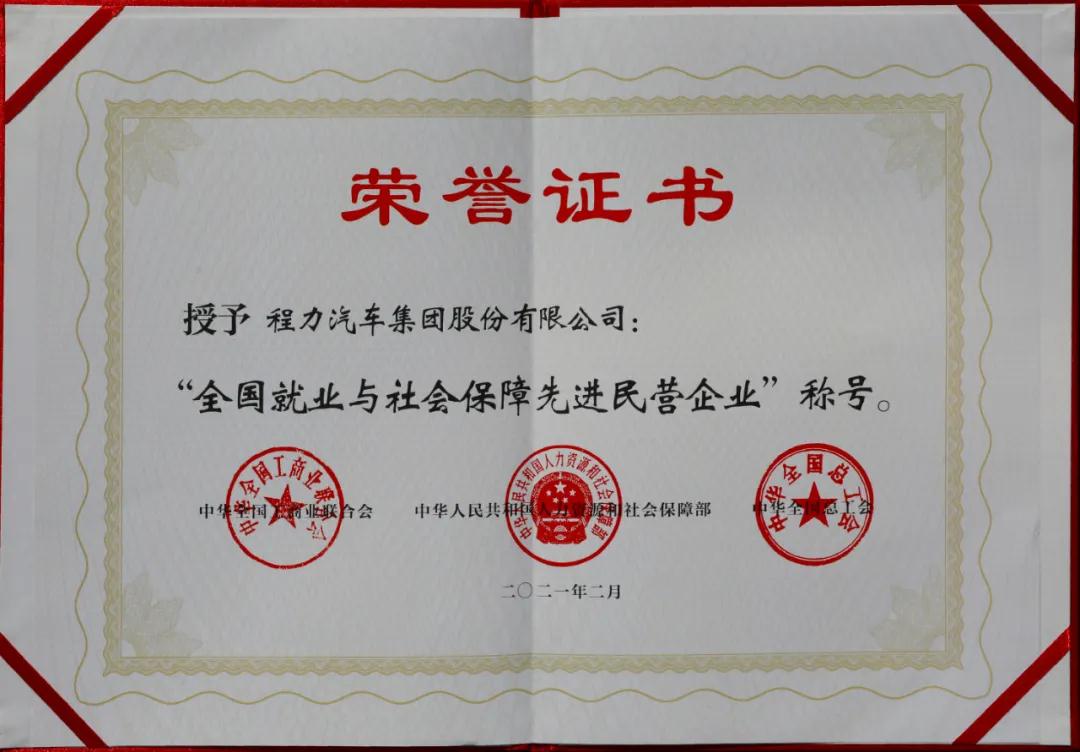 3月2日,程力汽車集團(tuán)股份有限公司收到國家人力資源和社會保障部、中華全國工商業(yè)聯(lián)合會、中華全國總工會聯(lián)合頒發(fā)的“全國就業(yè)與社會保障先進(jìn)民營企業(yè)”榮譽(yù)證書及牌匾,這是程力汽車集團(tuán)股份有限公司在2021年初被授予的開門紅全國性殊榮,也是程力集團(tuán)繼2020年連續(xù)三次受到全國性榮譽(yù)表彰。